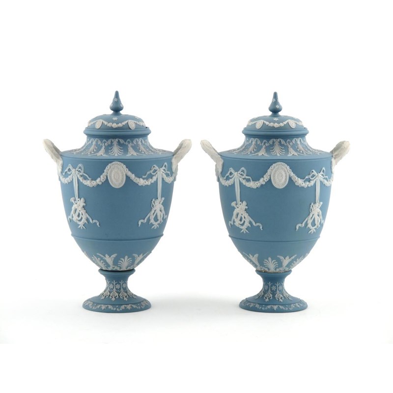 A pair of Wedgwood Jasperware vases and covers early 19th century