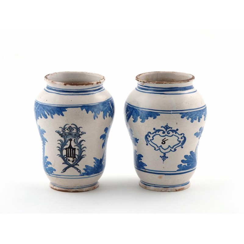 Two Continental tin-glazed albarelli late 18th / early 19th century