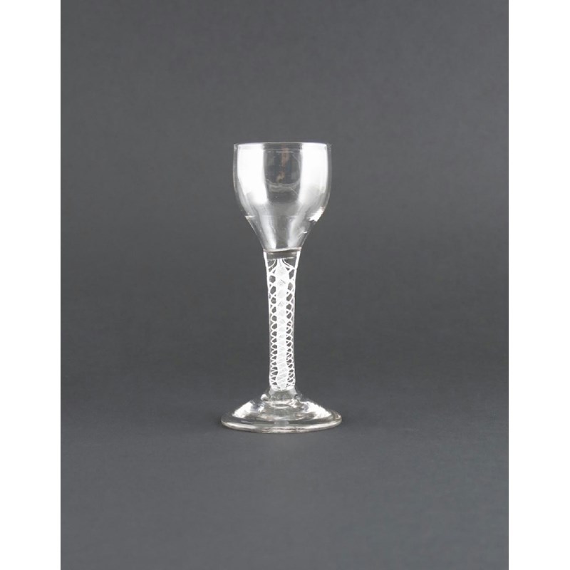 A small wine glass c.1760, the rounded bowl raised on a double series opaque twist stem above a high foot, 14cm.