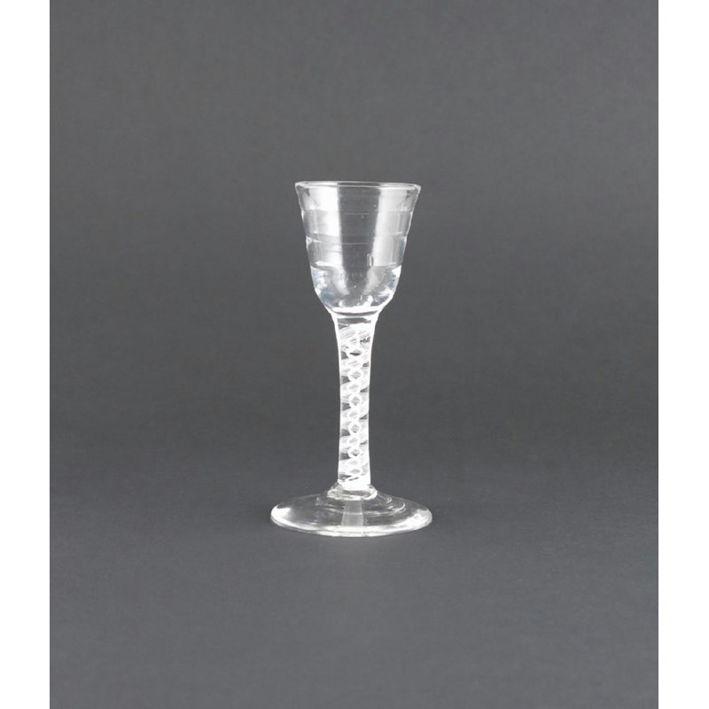 A Lynn glass c.1760, the funnel bowl moulded with horizontal ribs, raised on a double series opaque twist stem, 13cm.