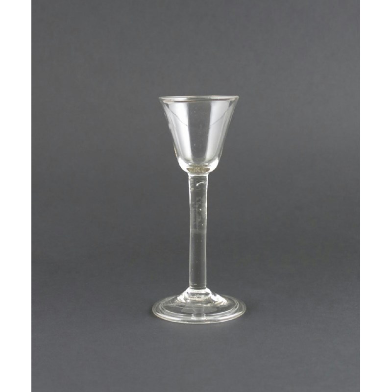 A tall wine or cordial glass mid 18th century, the funnel bowl raised on a plain stem above a folded foot, 16cm.