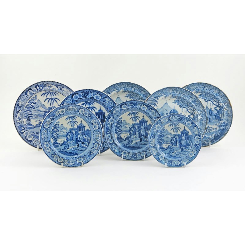 Eight various Herculaneum blue and white transferware plates 19th century, from the Indian series, printed with Mausoleum views, 25cm max. (8)