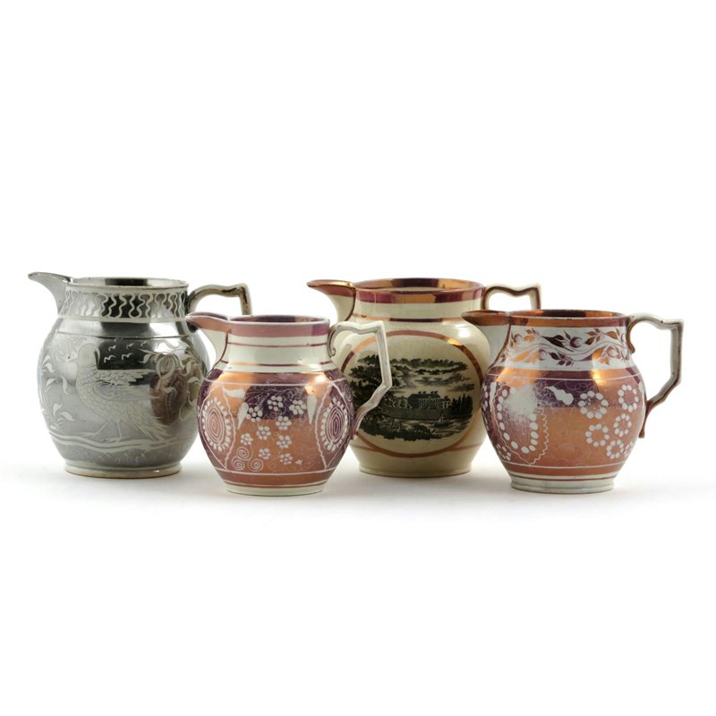 Four Sunderland pearlware lustre jugs 1st half 19th century