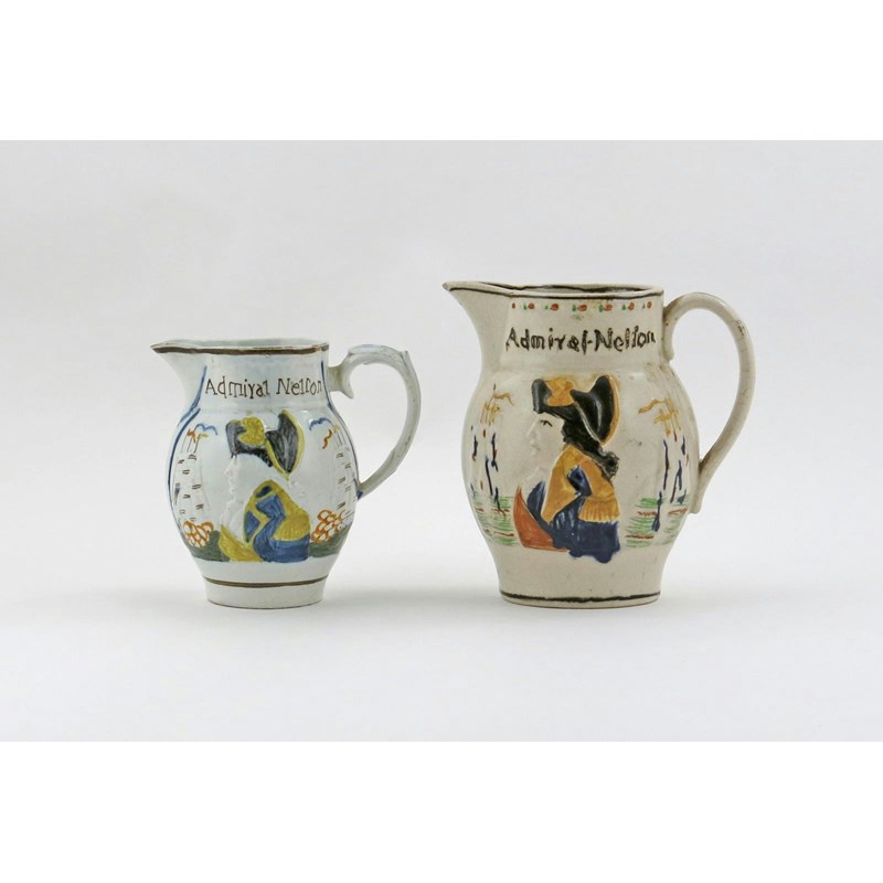 Two pearlware moulded Admiral Nelson jugs 19th century