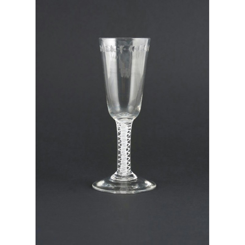 An ale glass c.1760-70, the rim with an egg and dart design of polished ovals, raised on a double series opaque twist stem, 17.2cm.