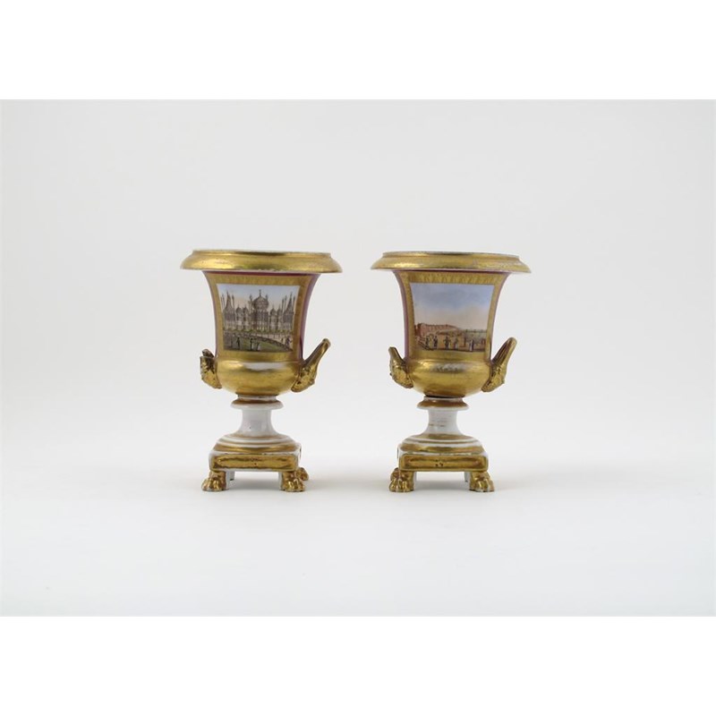A pair of English porcelain campana vases 19th century