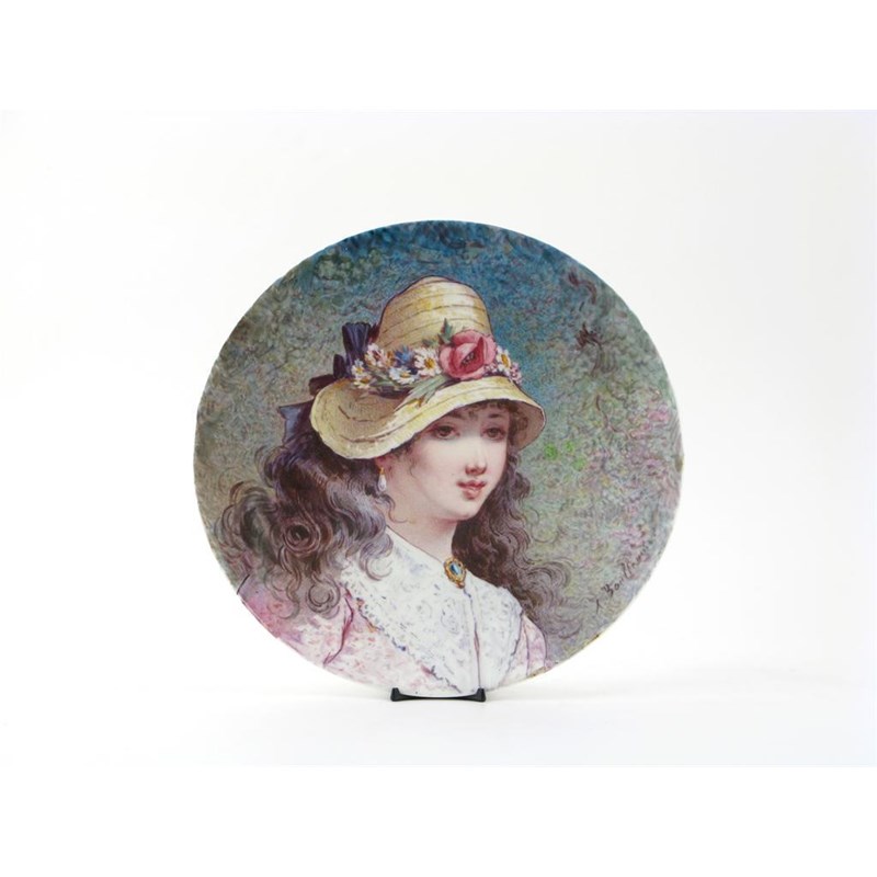 A Minton porcelain portrait plate late 19th century, studio decorated with the portrait of a young girl wearing a summer hat, inscribed 'A Boullemier', faint impressed mark to the reverse, 26.5cm.
