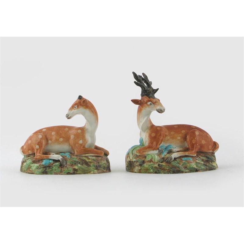 A pair of pearlware models of a stag and doe 1st half 19th century