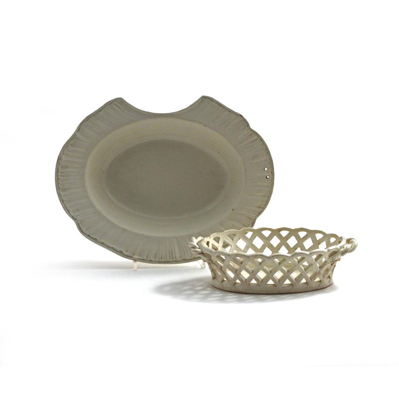 A Leeds creamware barber's bowl and a creamware basket 1st half 19th century