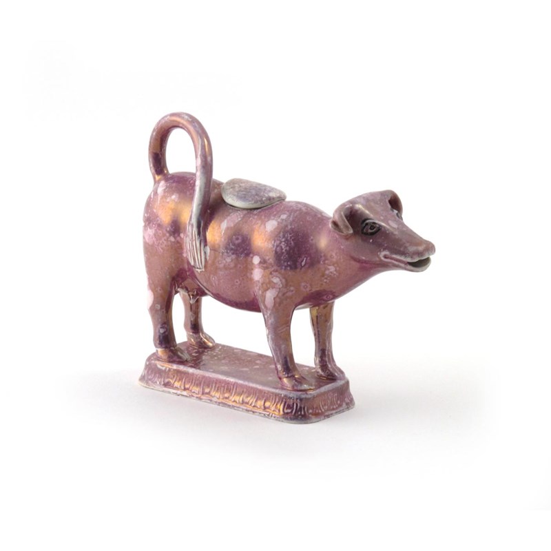 An unusual Sunderland lustre cow creamer and cover early 19th century