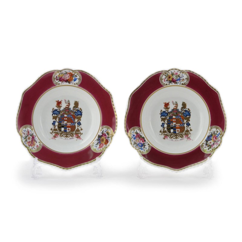 A pair of Chamberlain's Worcester armorial soup plates c.1827