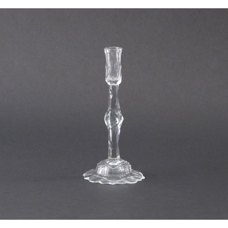 A cut glass taperstick c.1770, the narrow stem with a faceted knop, the sconce lightly waisted, all raised above a domed and lobed foot, 16cm.
