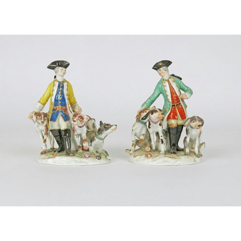A pair of Meissen figures of huntsmen with hounds 20th century