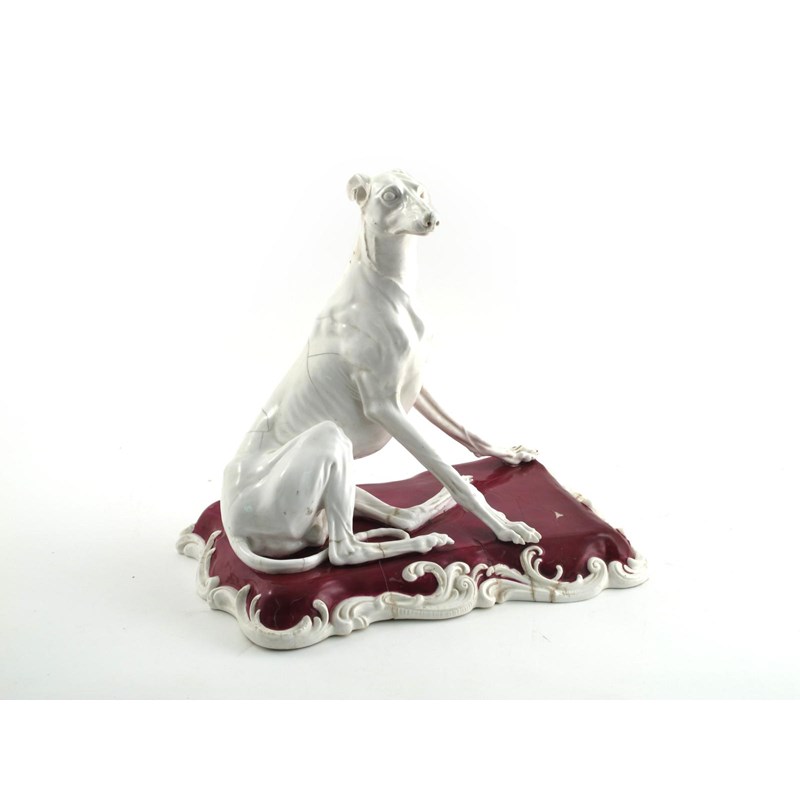 A massive and rare English porcelain model of an Italian greyhound 1st half 19th century