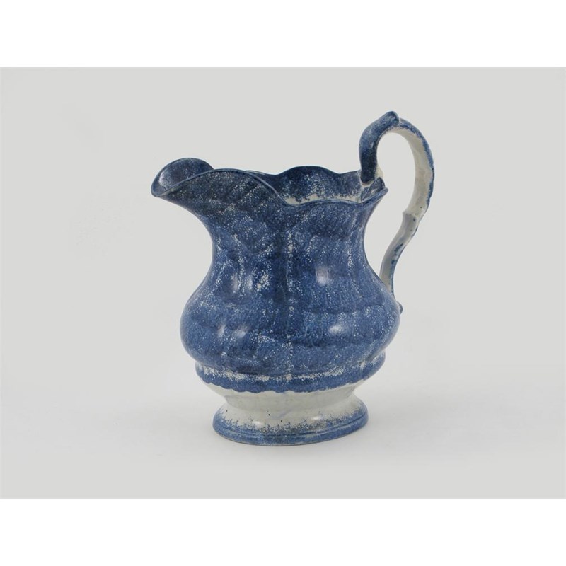 A large pearlware jug, the moulded body sponge decorated in blue, 19th century, 37cm.