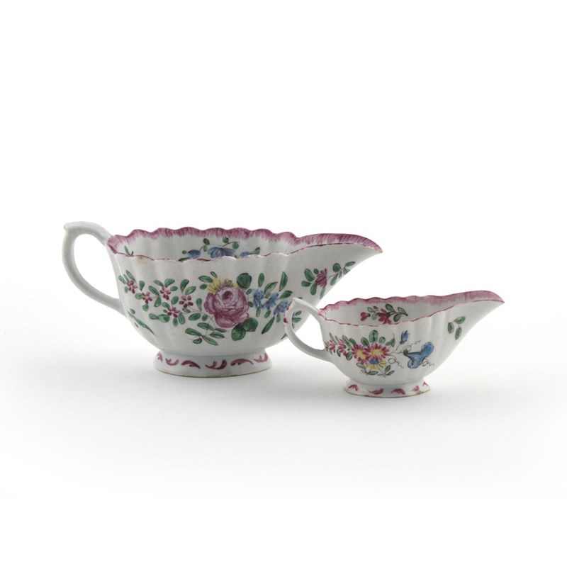A Bow sauceboat and a Bow creamboat c.1760