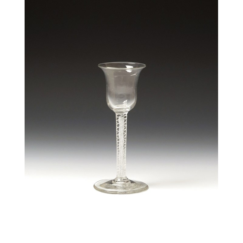 A mixed twist wine glass c.1765, with bell bowl raised on an opaque twist encircling a dense airtwist, 15.2cm.