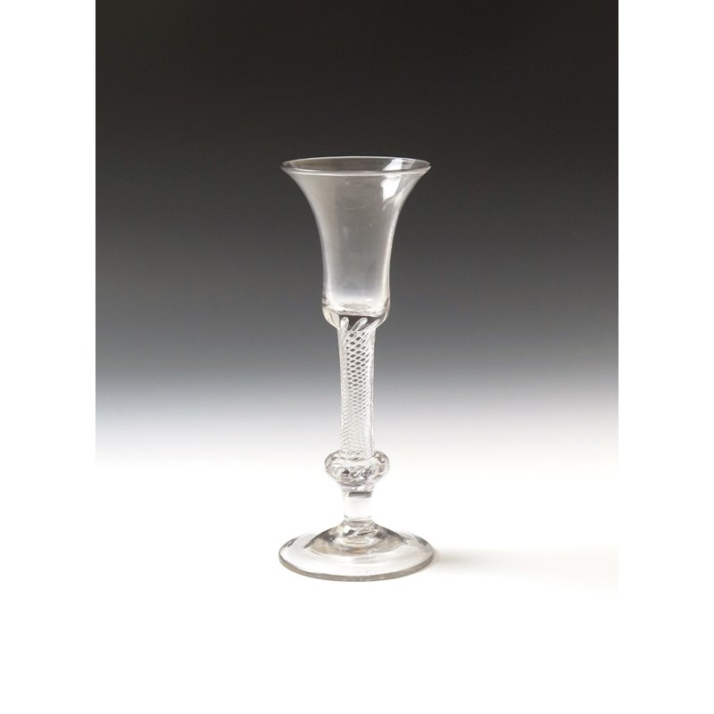 A composite stem wine glass c.1755, with a bell bowl rising on an airtwist stem above a low knop with two rows of air beads or tears, 18.4cm.