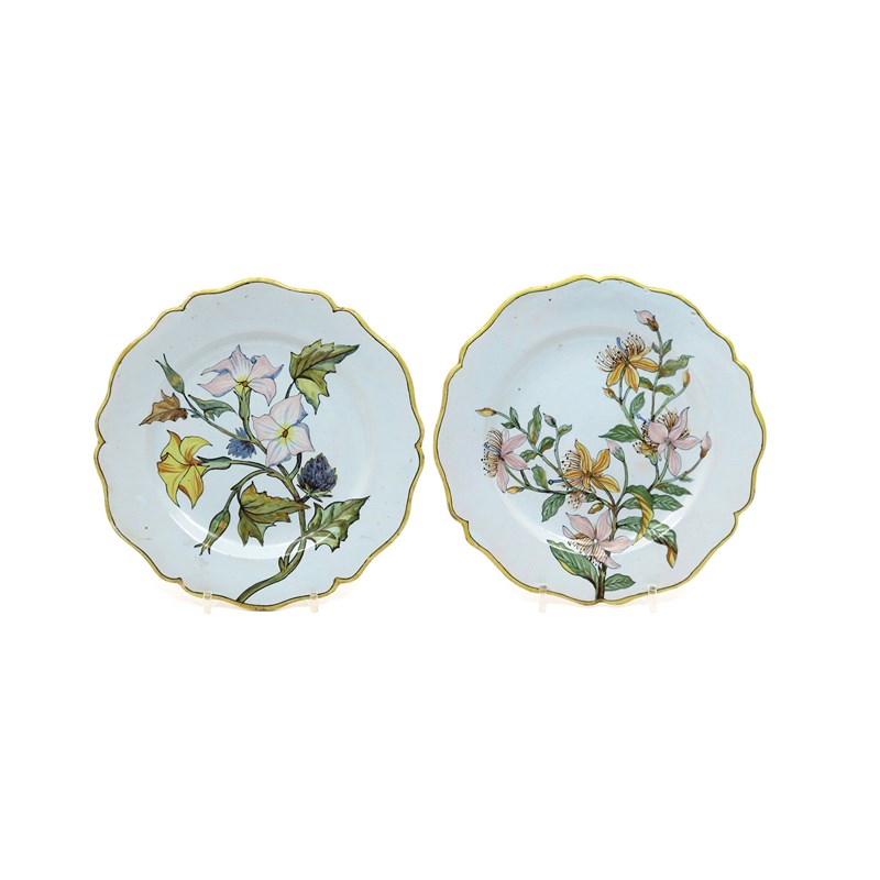 A pair of Porquier-Beau Quimper botanical plates late 19th century