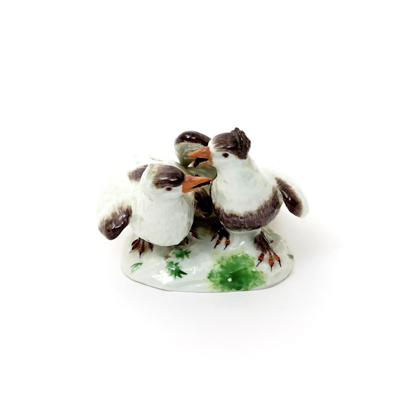 A Continental porcelain group of two billing doves 19th century