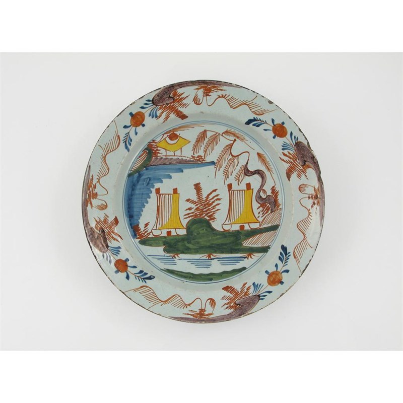 A large delftware polychrome dish