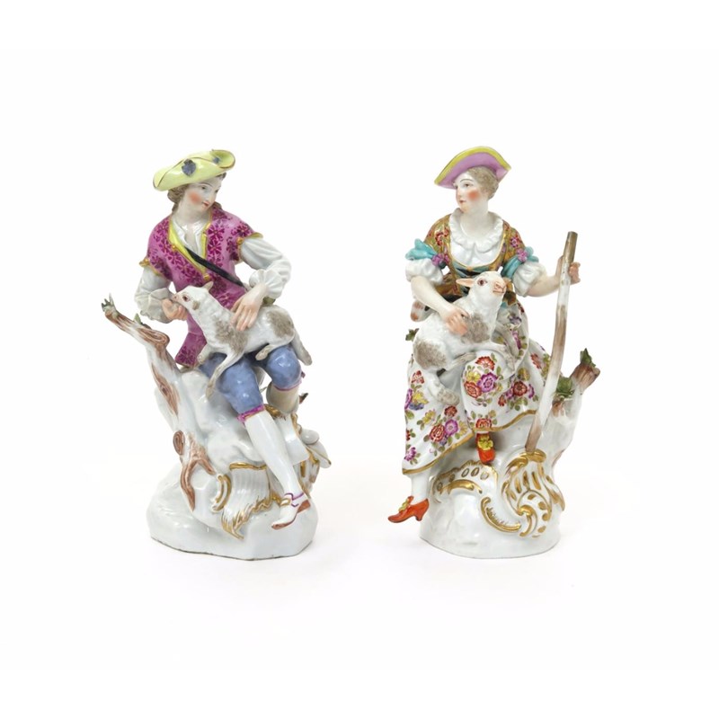 A pair of Meissen figures of a shepherd and shepherdess 19th century