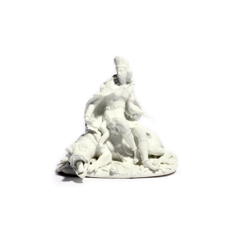 A Meissen white-glazed figure of America c.1745-50