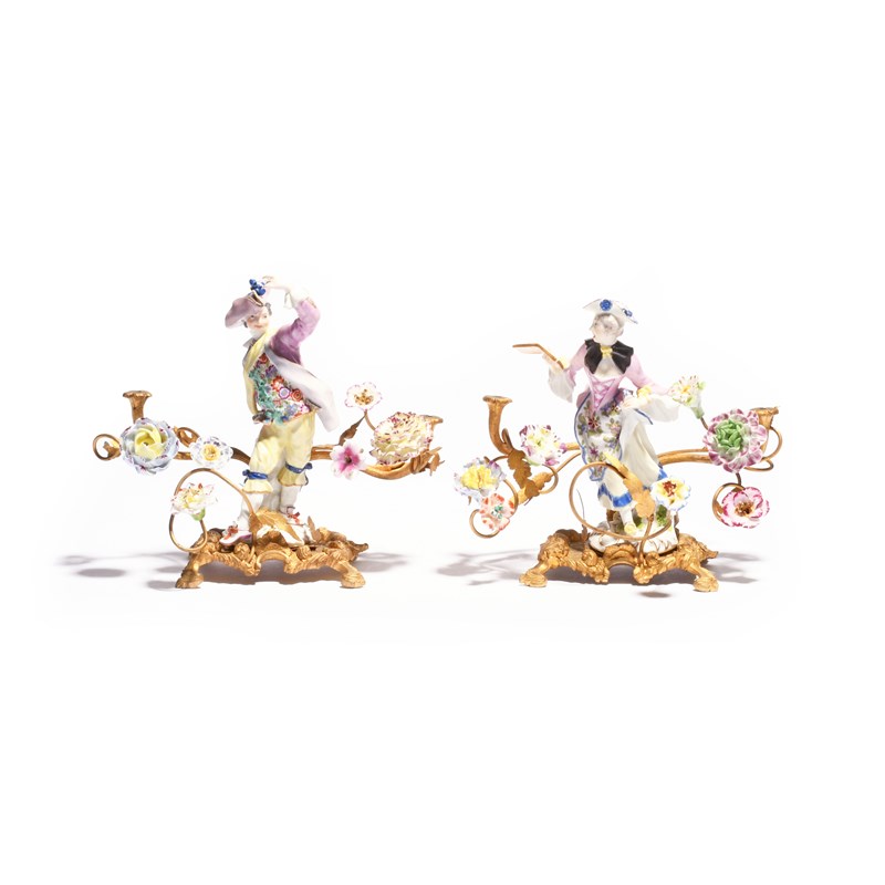 A pair of ormolu-mounted Meissen figures from the Gallant Orchestra mid 18th century