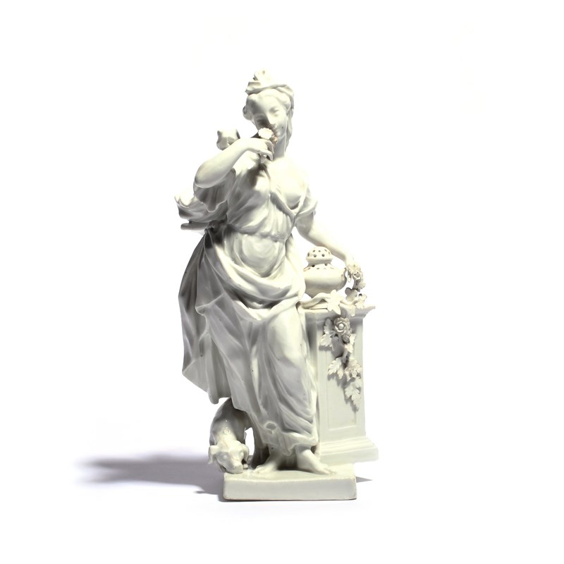 A Meissen white-glazed figure emblematic of Smell mid 18th century