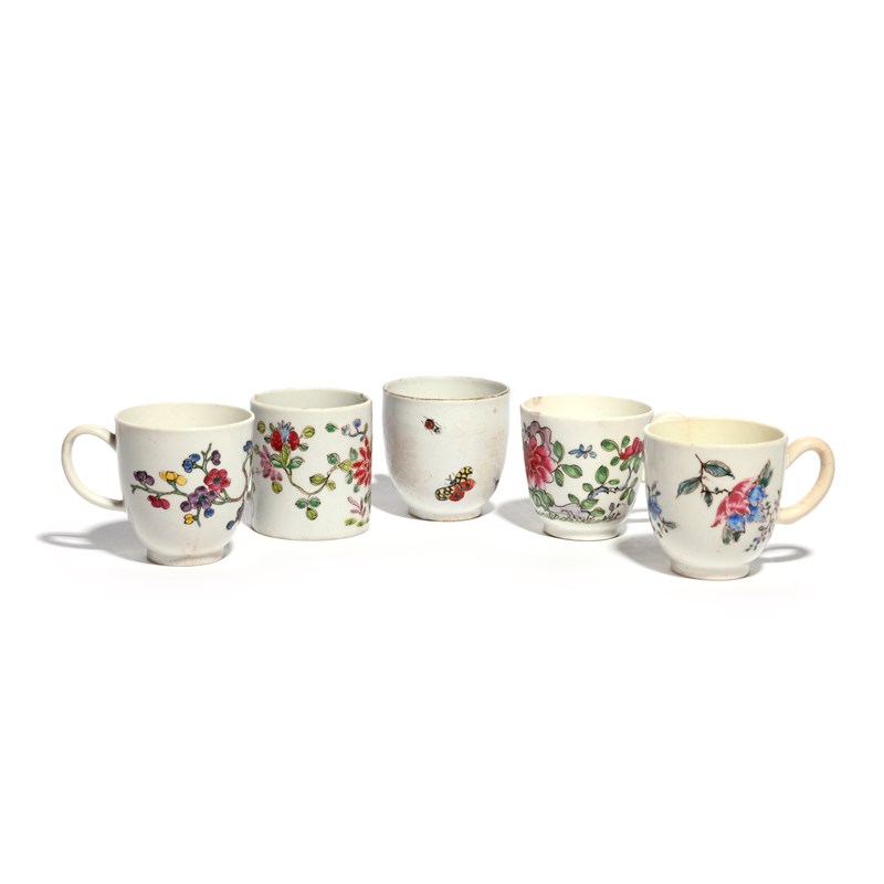 Provenance: from the collection of Lady Kate Davson, née Kate Foster (1938-2020). Three Bow famille rose cups, Ainslie, Sotheby's 1960.