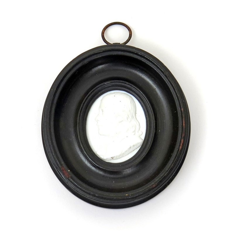 A small portrait plaque of Alexander Waugh, facing left and mounted in a black wood frame, inscribed 'A Waugh MA 1791', 7cm overall.