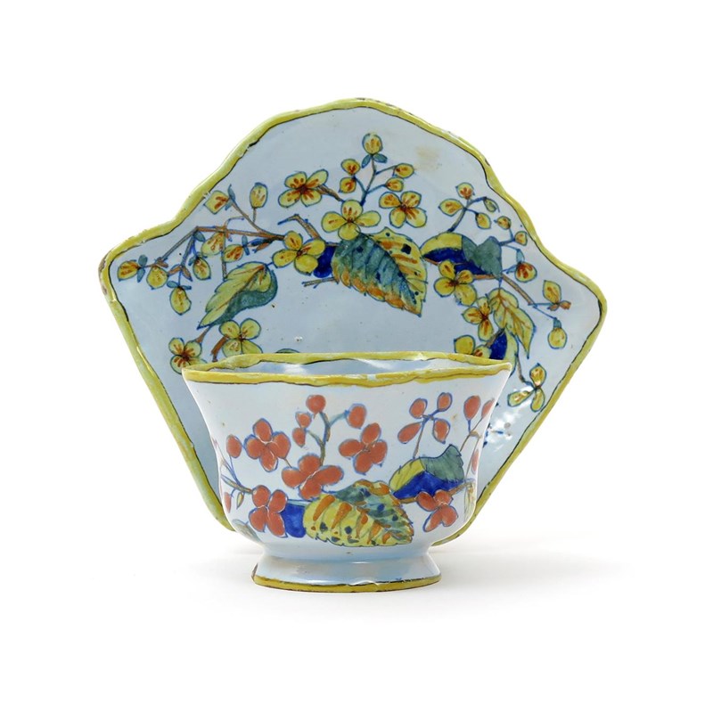 A Porquier-Beau Quimper hexagonal teacup and saucer late 19th century