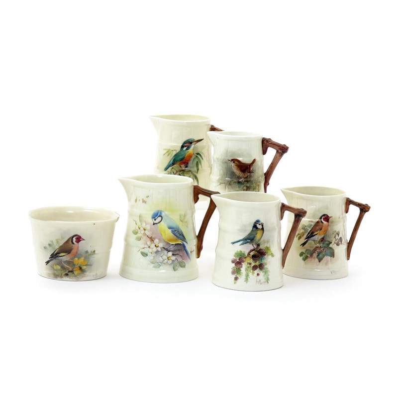 Five Royal Worcester ornithological milk jugs date codes for 1911