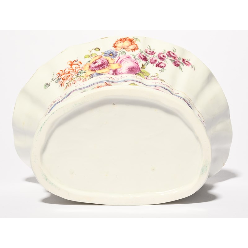 A Chelsea bough pot, c.1755, the fluted D section finely painted with a spray of flowers including