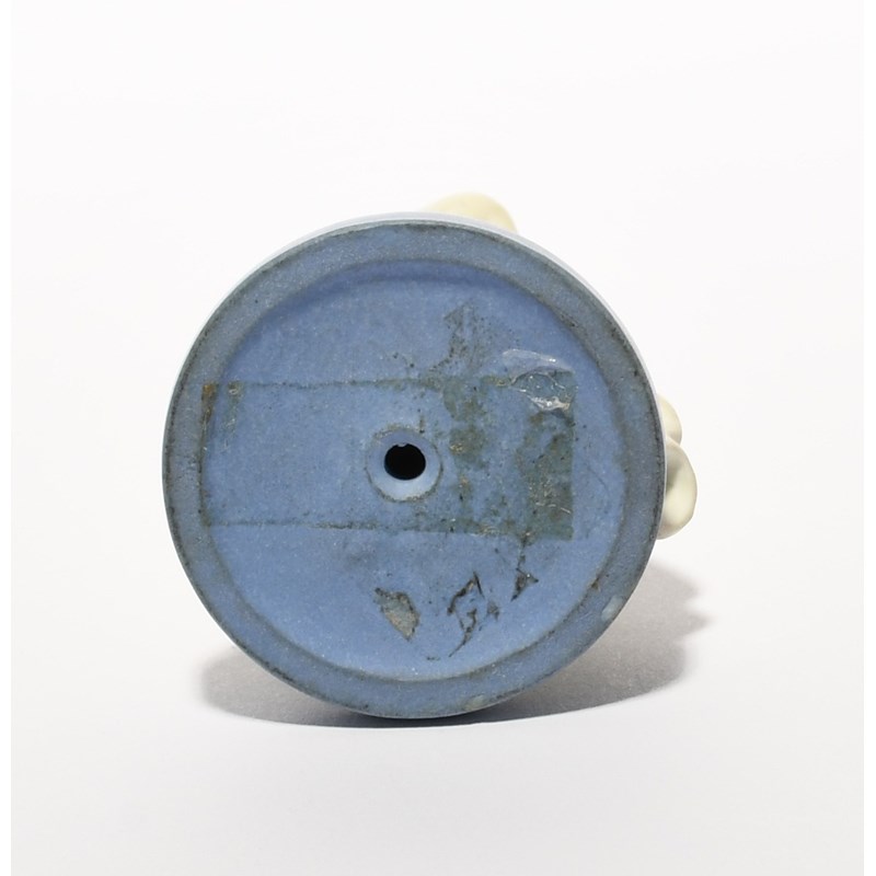 A Wedgwood Jasperware chess piece, late 18th century, after John Flaxman, modelled as the actress Sarah Siddons as Lady Macbeth, standing with her right arm raised in a theatrical pose, on a circular blue base, 8cm high.
