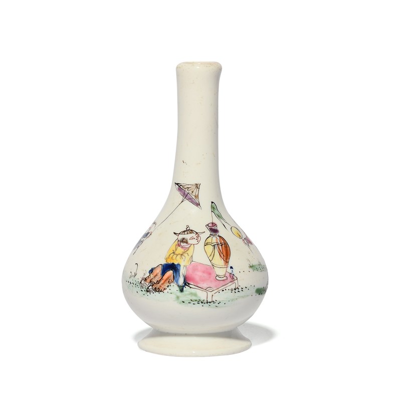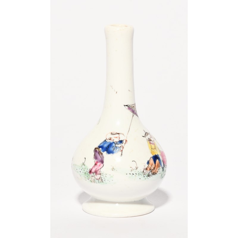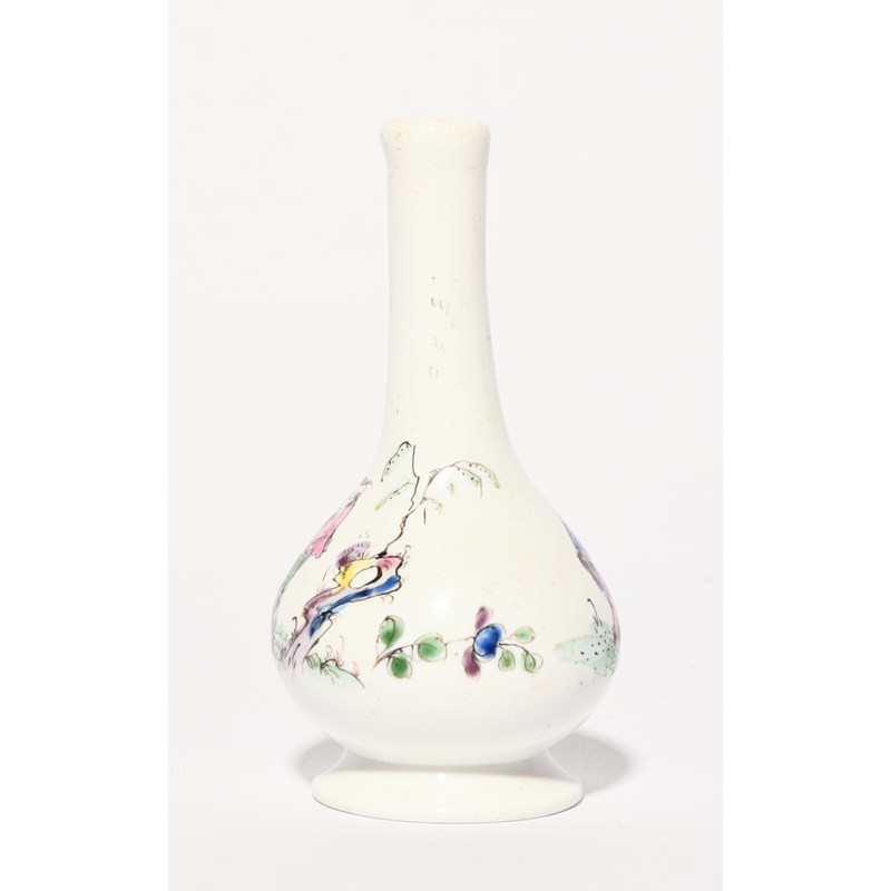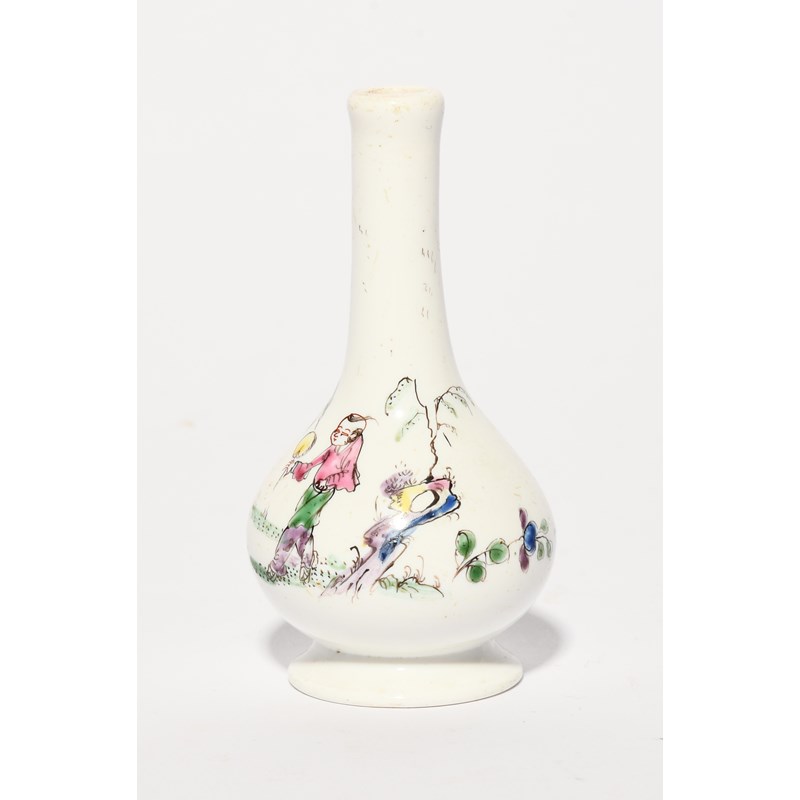 A good miniature opaque glass bottle or scent flask, c.1750, painted in the Chinese manner with a