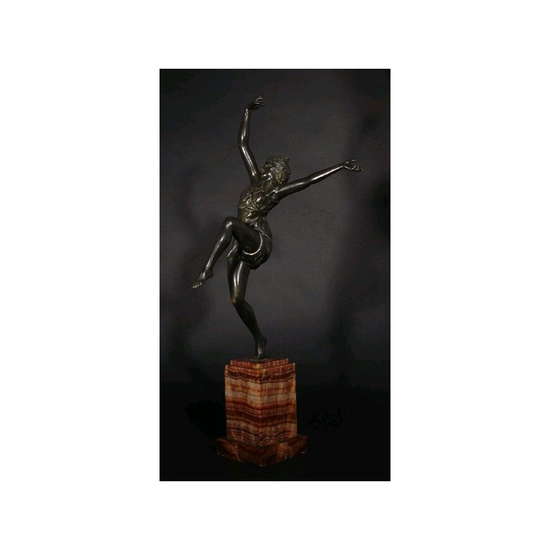 'Bacchanale' A Bronze figure of a dancing lady cast from a model by Guiraud Riviere, on marble base signed in the marble 45cm. high