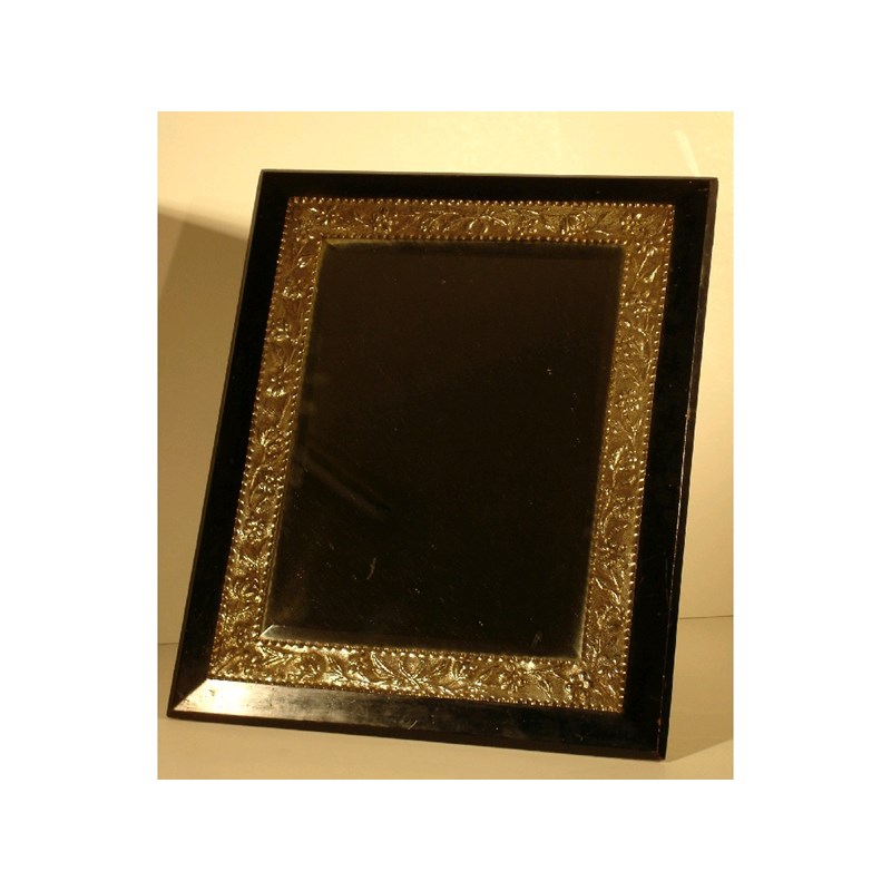 An Aesthetic Movement silver mounted ebonised wood mirror easel back, the silver band stamped with flowers, stamped marks London 1892 55cm. high