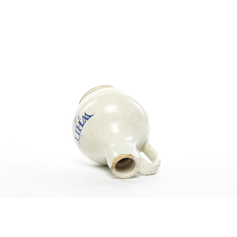 of globular form with a strap handle, the front inscribed 'WHIT' above the under-scribed date '1646', on a spreading foot