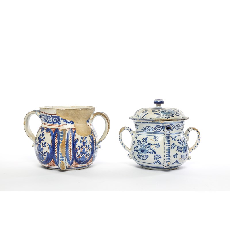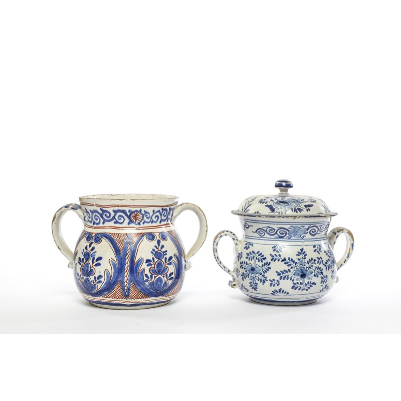 A DELFTWARE POSSET POT AND COVER