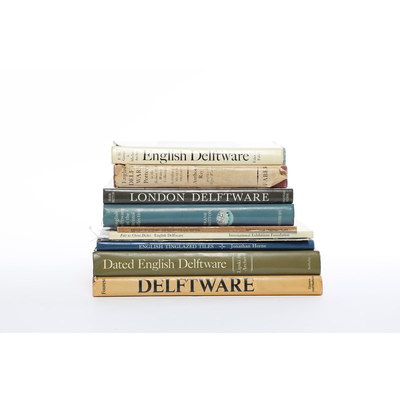 comprising: Frank Britton, English Delftware in the Bristol Collection; Frank Britton, London Delftware; Garner & Archer, English Delftware; Anthony Ray, English Delftware Pottery in the Ashmolean Museum, Oxford; Lipski and Archer, Dated English Delftware; Jonathan Horne, English Tin-Glazed Tiles; H-P Fourest, Delftware, English Delftware in the Rijksmuseum, Amsterdam; Archer and Morgan, Fair as China Dishes - English Delftware; Jonathan Horne, A Catalogue of English Delftware Tiles (10)