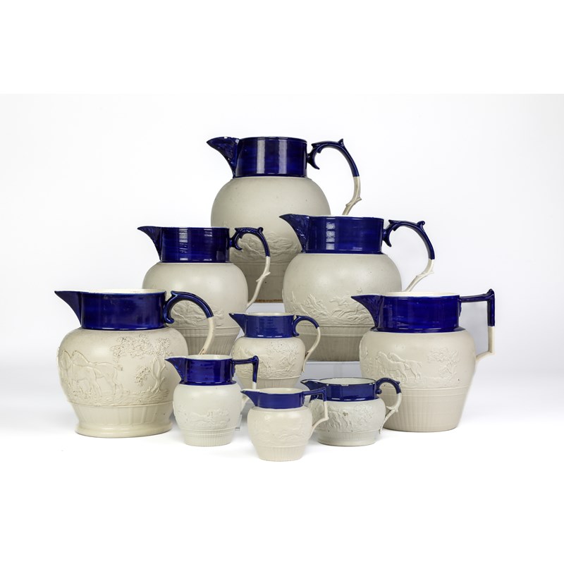 NINE CASTLEFORD-TYPE 'HUNTING' JUGS