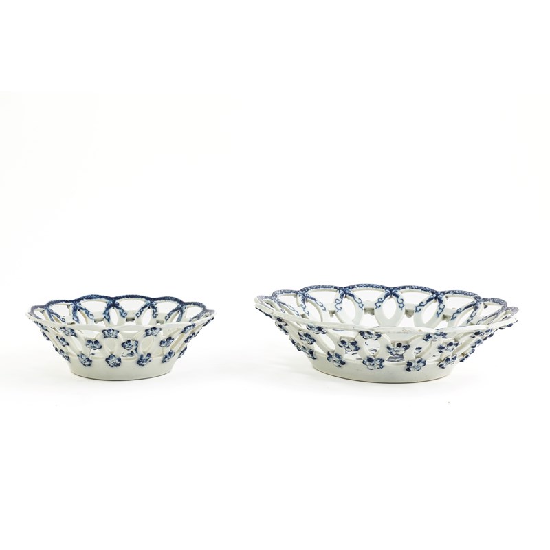 TWO WORCESTER BLUE AND WHITE BASKETS