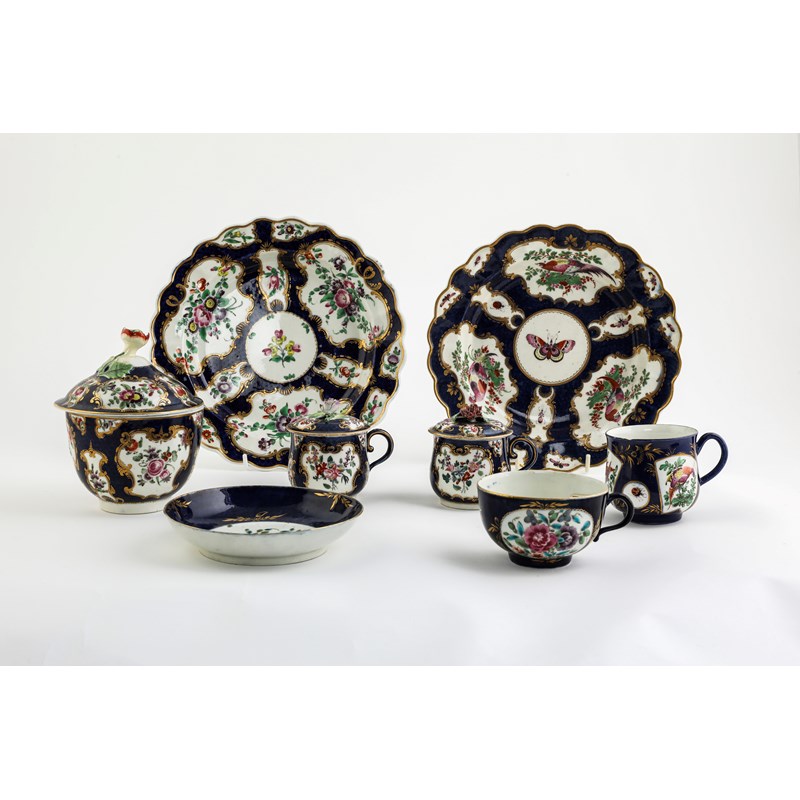 A COLLECTION OF WORCESTER BLUE GROUND WARES