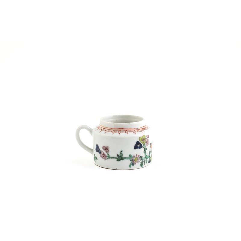 painted with a meandering floral spray beneath an iron red diaper border, iron red mark to the base