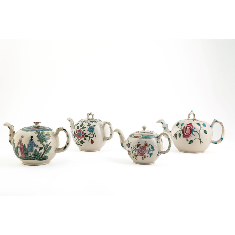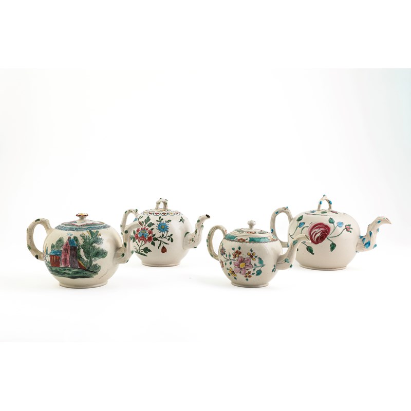 A COLLECTION OF FOUR STAFFORDSHIRE SALT-GLAZED STONEWARE TEAPOTS AND COVERS