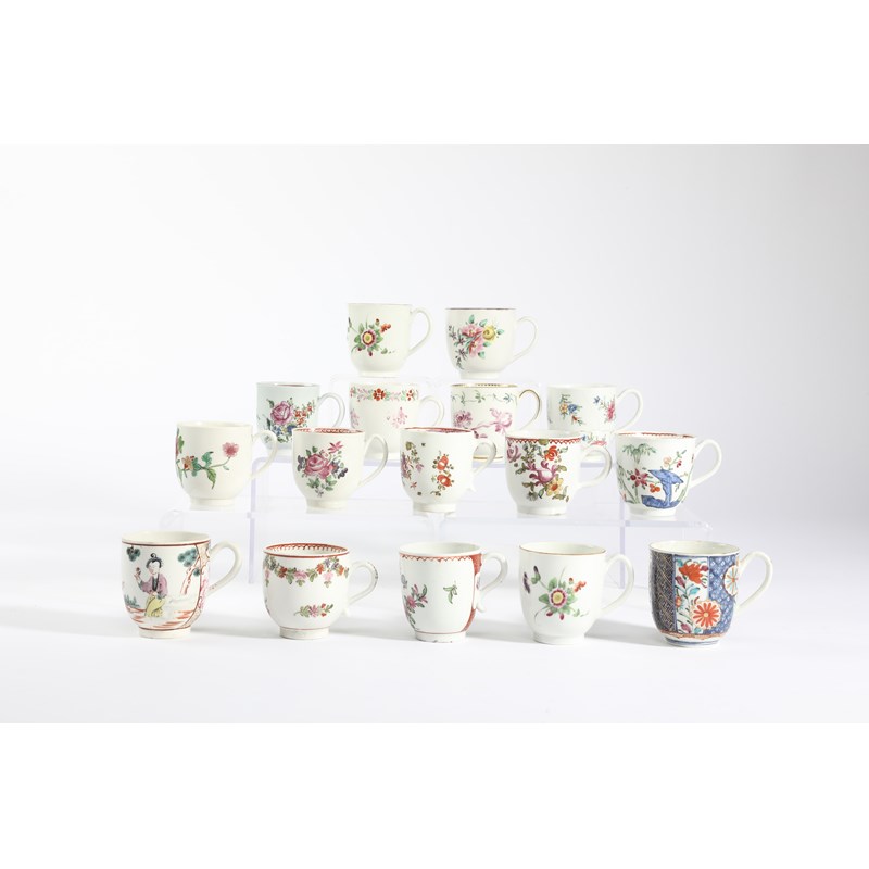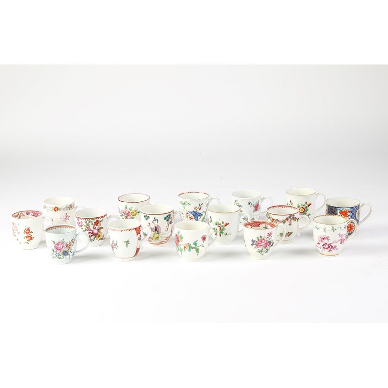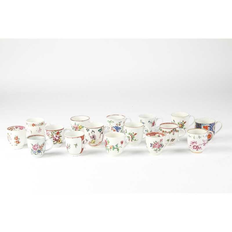 A COLLECTION OF SIXTEEN ENGLISH PORCELAIN COFFEE CUPS