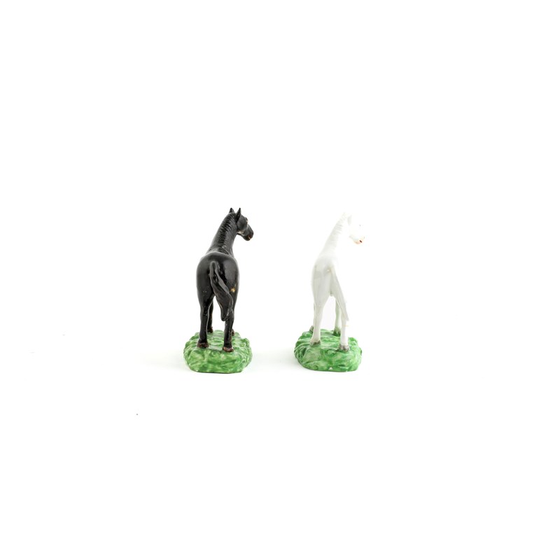 one white, the other black, both raised on green moulded bases, red painted marks (2)