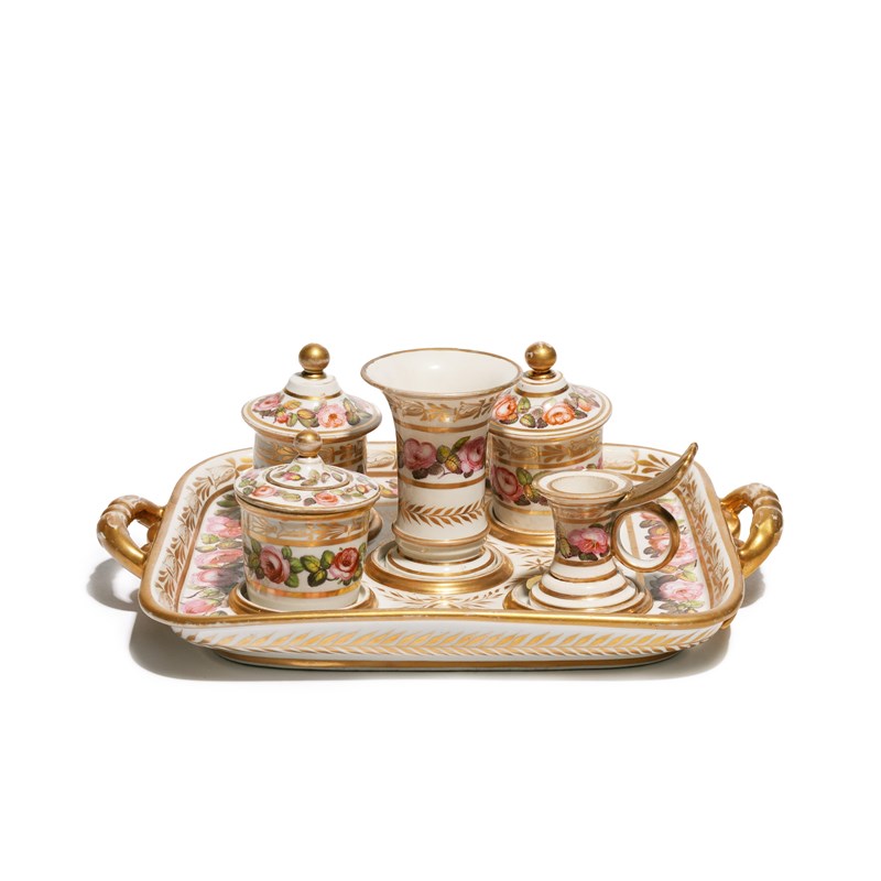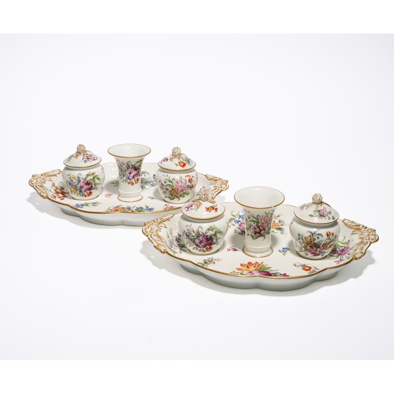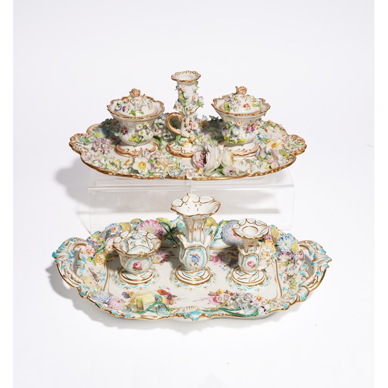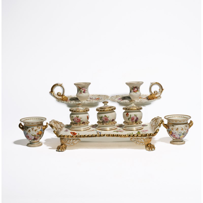 A COLLECTION OF COALPORT INKSTANDS OR DESK SETS