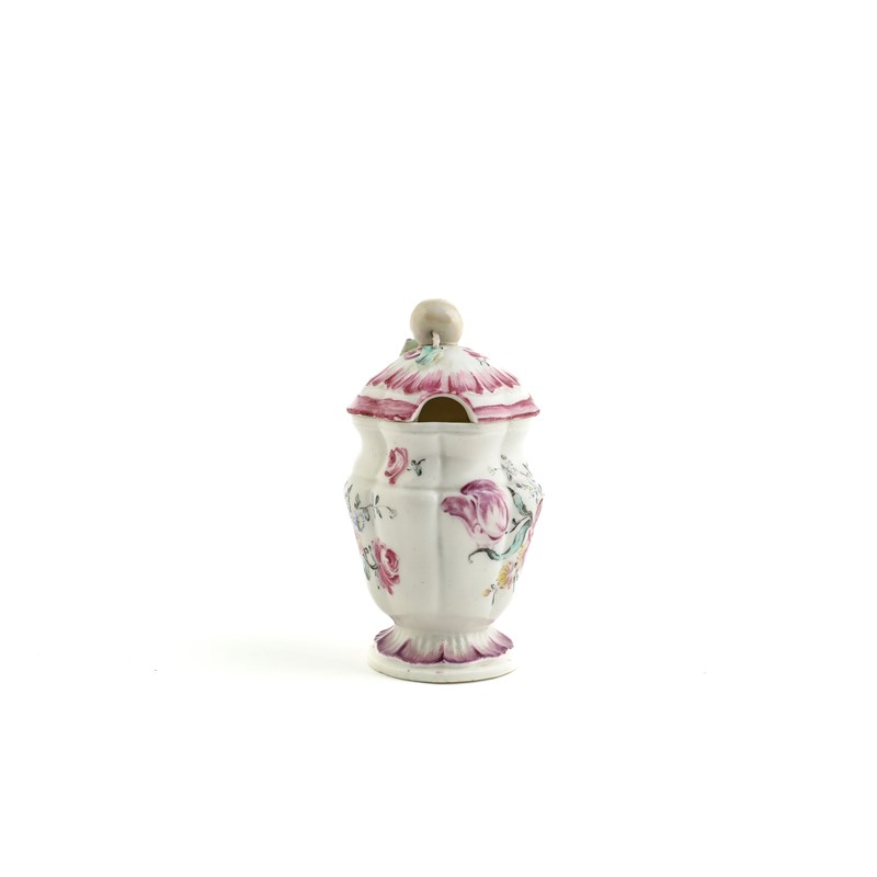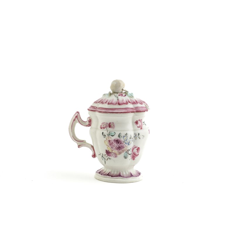 with an apple knop, delicately painted with flowers and tones of puce (2)